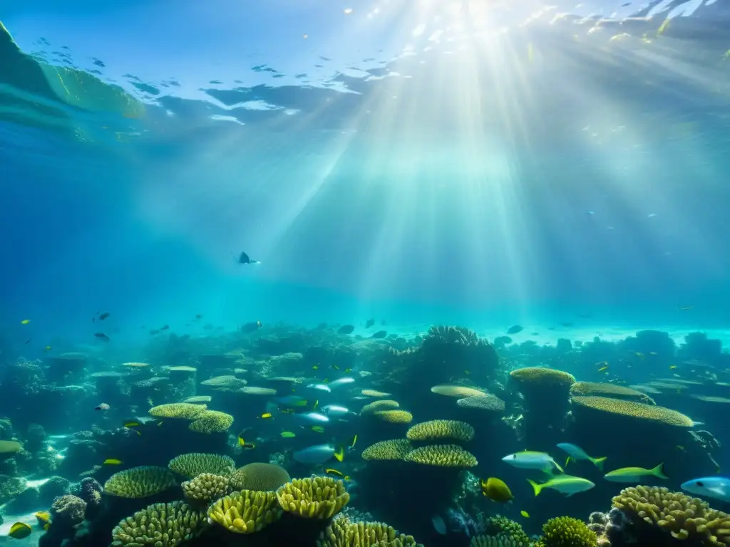 Una asombrosa fotografía submarina de un vibrante arrecife de coral repleto de peces coloridos y otras formas de vida marina